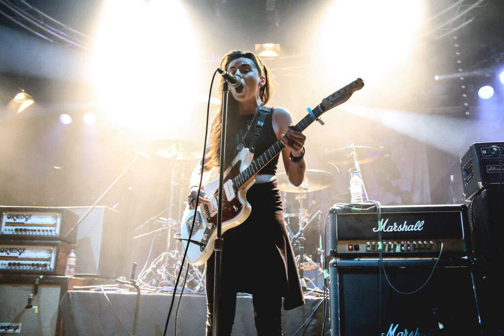 Opening up were PVRIS, a three-piece alt-rock unit hailing from Massachusetts. Since the release of their debut album White Noise, this is a band that has been blowing up on both sides of the pond, and one which the crowd seemed eager to catch live. What started off as a lacklustre beginning quickly gained momentum into something quite spectacular. It seemed like vocalist Lyndsey Gunnulfsen began as shy, being hesitant to interact with the crowd and keeping herself fairly controlled (a feature of the set which seemed to affect all in the band, but when three members are all playing two instruments each, it isn’t hard to understand), and her vocals were occasionally out of sync with the rest of the band. However, by the time ‘St Patrick‘ approached, Gunnulfsen had hit her stride, with some of the best vocal moments coming from this song. Regardless of this, an eager crowd continued to jump, sing, and scream from the moment the band came on stage until the moment they left, truly a testament to the power of a band who are supposedly nothing more than an opener, and one which paved the way for things to come.