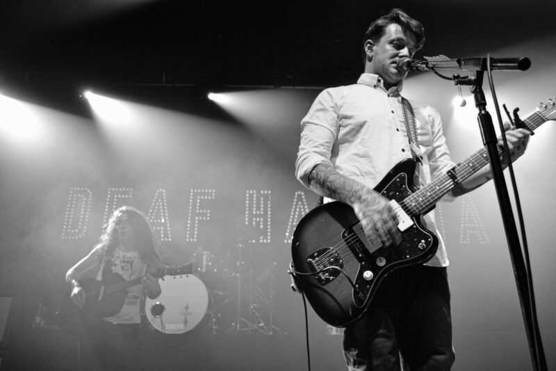 To open was Exeter’s Black Foxxes. Black Foxxes, who lay within a different genre, had a far different vibe than the other bands on the ‘Night People‘ tour; they weren’t as lively, they were just chilled. Instead of dancing, the crowd just listened, which, for an opening band, worked out okay. It was an interesting, risky choice to add a band like that to the lineup, but it seemed to be a hit; they were enjoyable in a different way. Sadly, some people had to miss some of their set, due to them starting before most people could enter the venue. However, I’m sure they picked up many new fans as well as wooing the old ones. The music couldn’t be faulted, and I would highly recommend for people to try and go to a show sometime or check out their music.